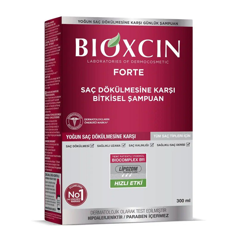 - Bioxcin Forte Şampuan, yoğun saç dökülmesi yaşayan ya da saçlarını korumak isteyen kişiler için formülü güçlendirilmiş bitkisel içerikli bir şampuandır.